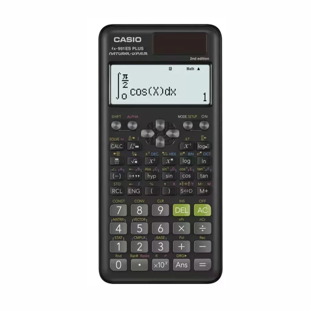Pantalla: LCD de 2 líneas (10 dígitos por línea). Funciones (417): SOLVE; cálculos sobre base n; constantes científicas; conversiones métricas; diferenciales e integrales; álgebra (función tabla); ecuaciones simultáneas y polinominales; cálculos matrices y números complejos; geometría (conversión de coordenadas); cálculos vectoriales; probabilidad (combinación y permutación); estadísticas (números aleatorios, enteros aleatorio); desviación estándar; análisis de regresión; regresión lineal y exponencial; fracciones.