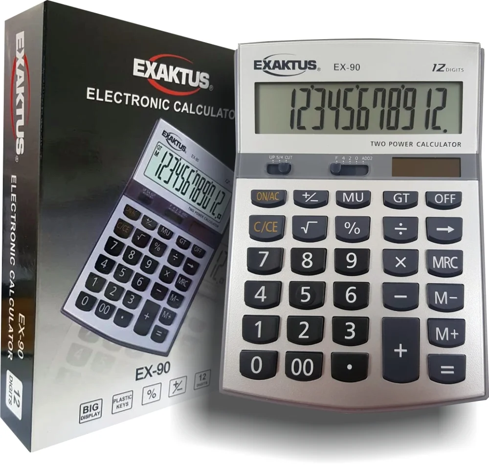 12 dígitos - Teclas plásticas - Cambio de signo - Función Mu/Gt - Tecla borrar - Doble cero - Selector de decimales y redondeo - 15x13cm - Alimentación dual.