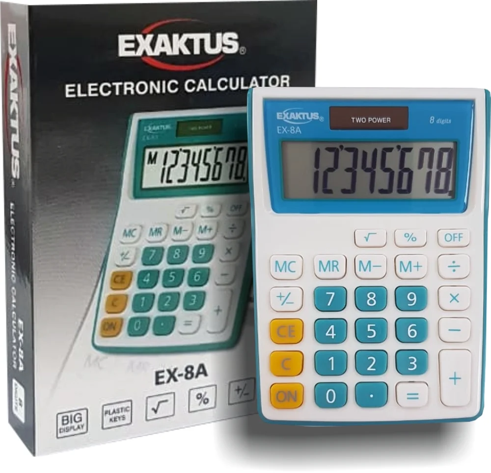 8 dígitos. Cambio de Signo. Cálculo de Tiempo. Cálculo de Impuestos. Selector de Decimales. Selector de Redondeo. Alimentación: Dual (solar y bateria LR1130). Dimensiones en mm (Al x An x Pr): 85x118x24. Visor elevado. Color: azul y blanco